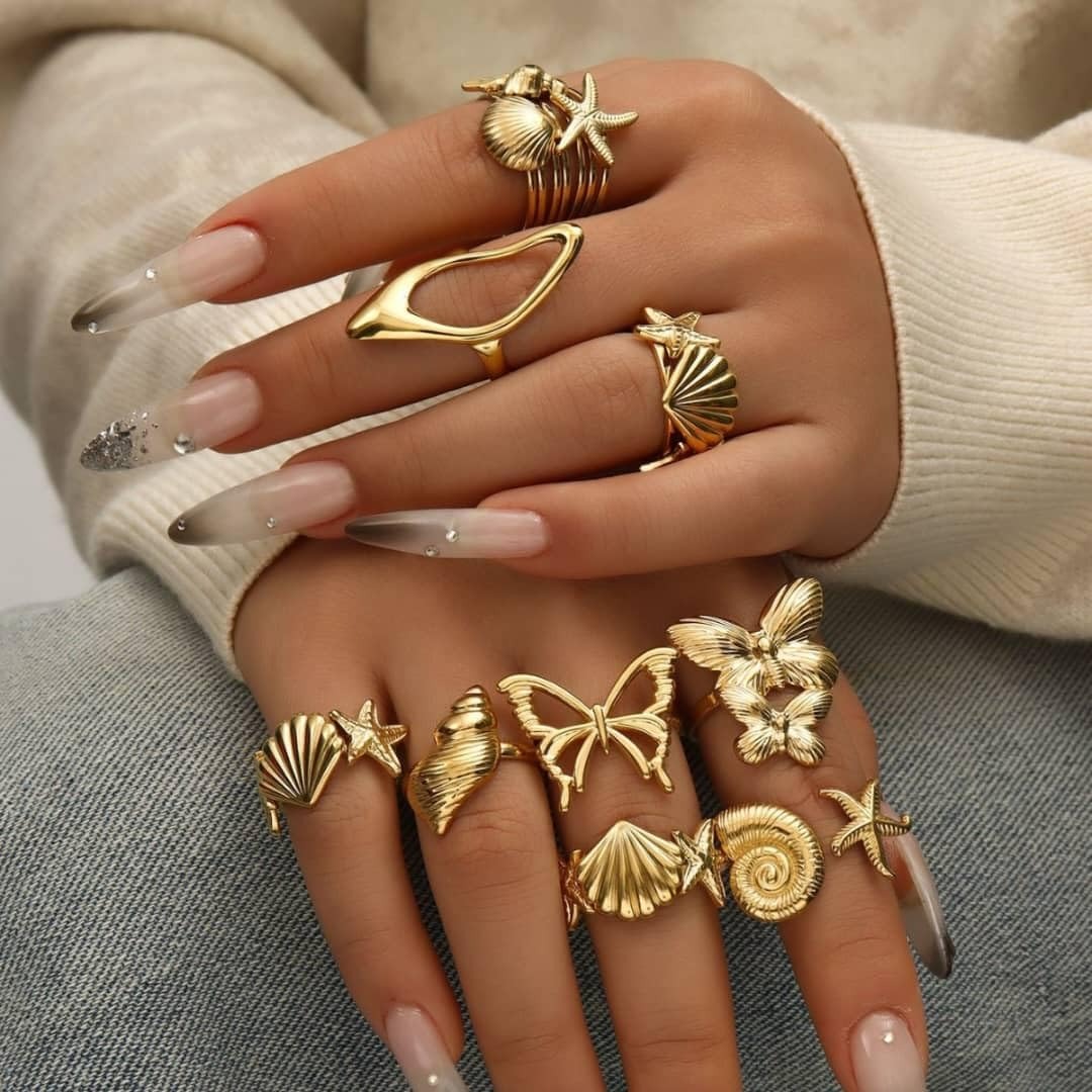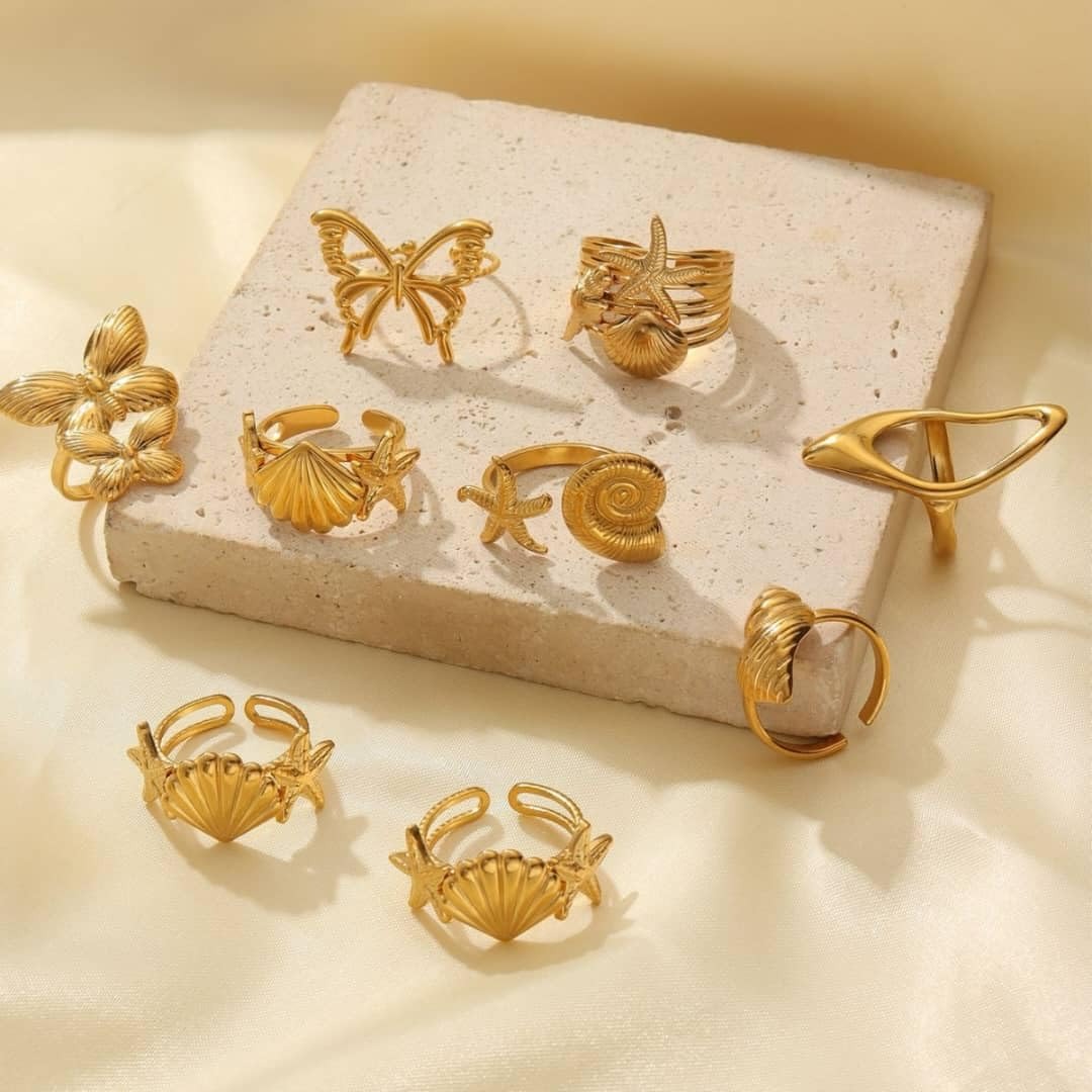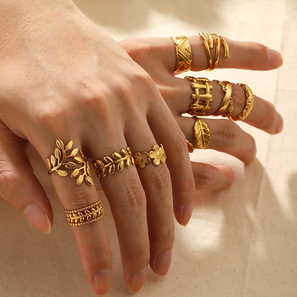 ARK JEWEL Set of 3 anti tarnish free size Random design Latest Stylish Gold Plated Rings for Women and Girls