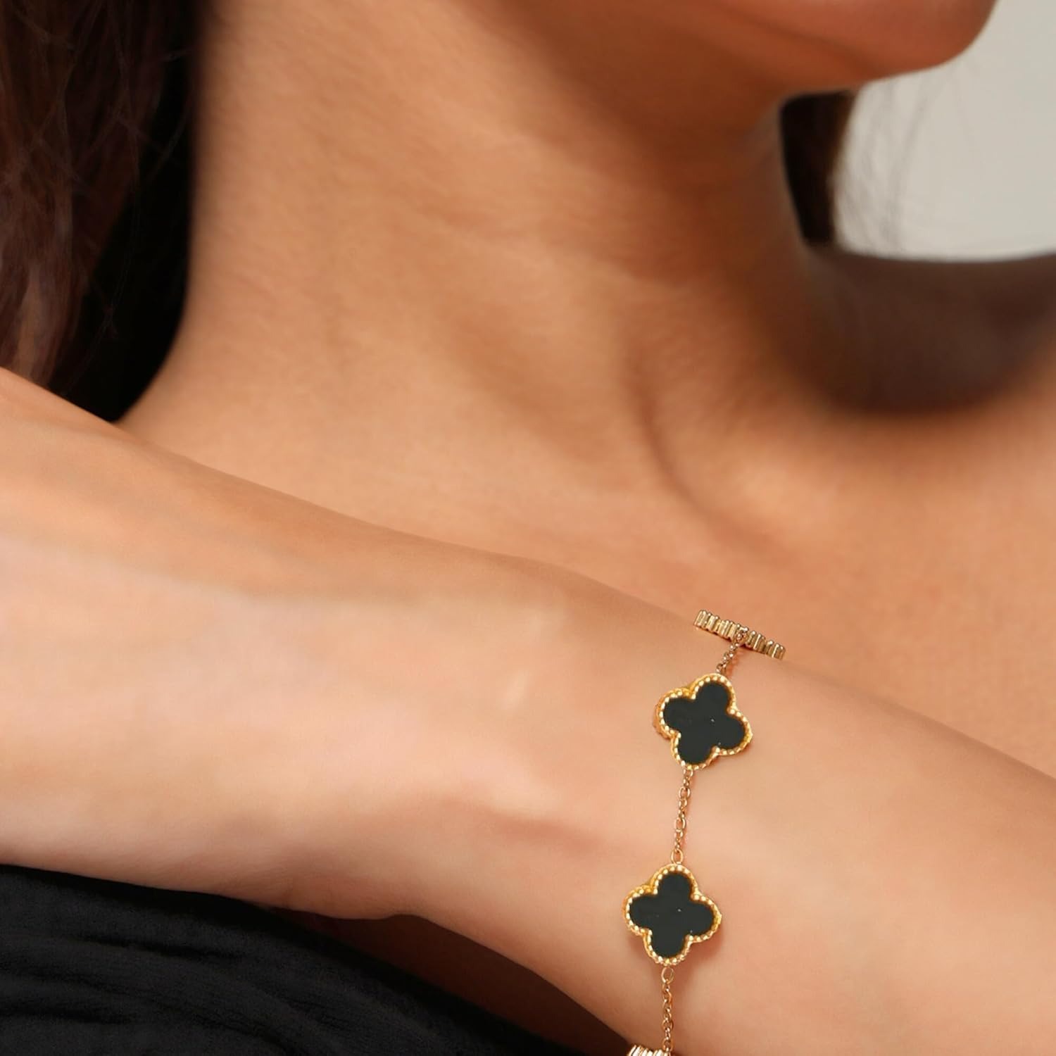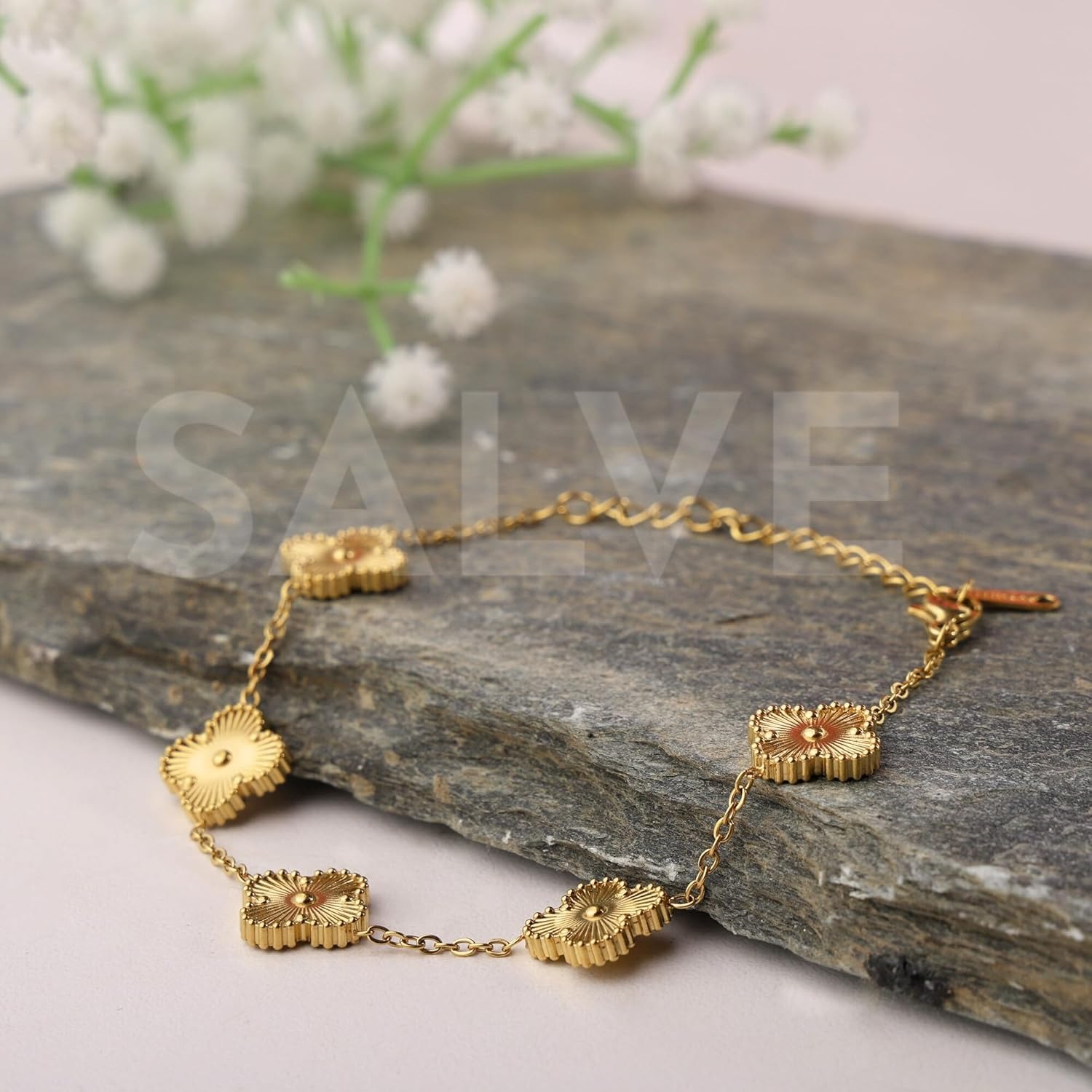 SALVE Clover Anti Tarnish Bracelet for Women Stylish | Stainless Steel Bracelet for Woman | Fashion Jewellery for Women Aesthetic Accessories for Girls Chain Bracelet Gold